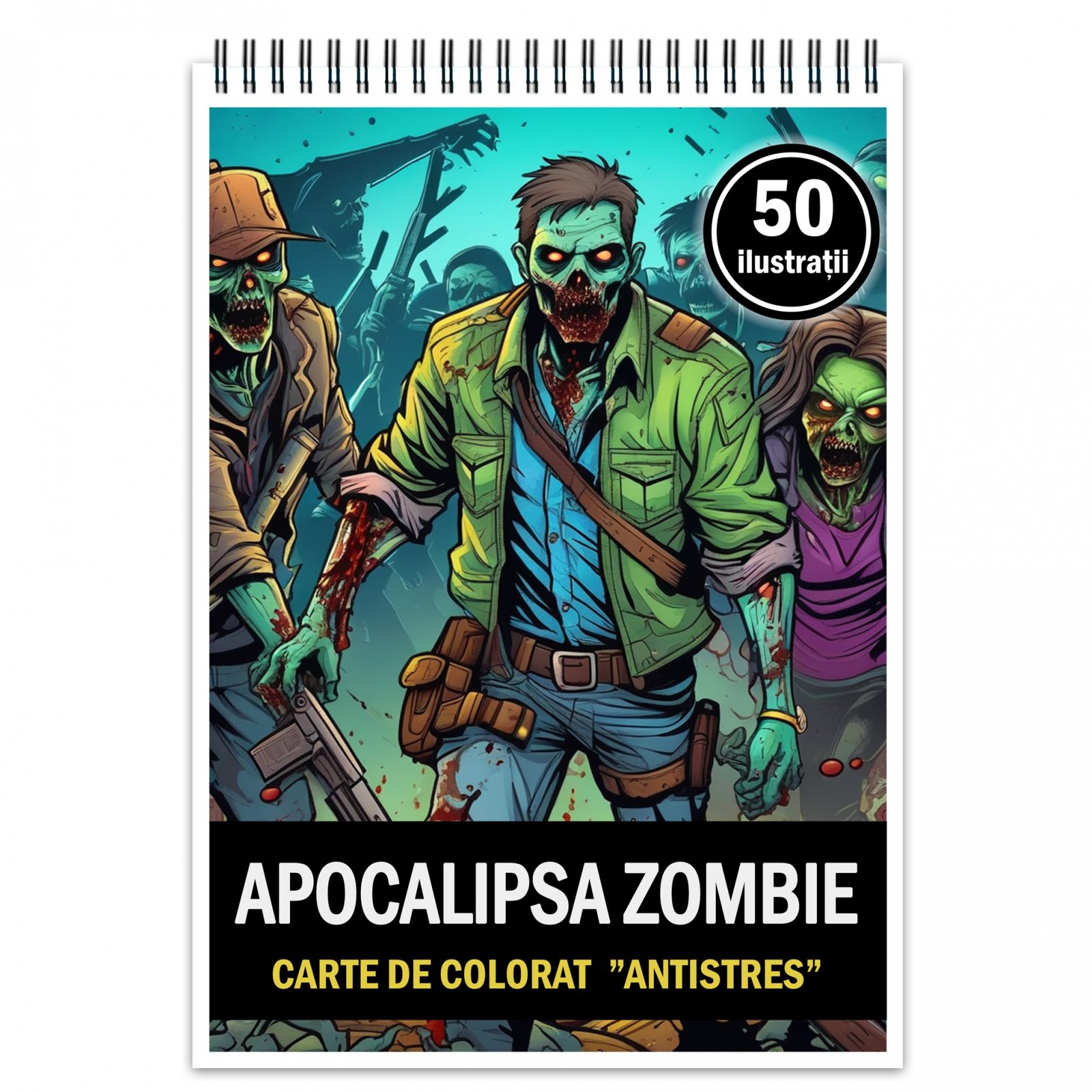 Carte de colorat pentru relaxare si antistres, 50 de ilustratii, Apocalipsa Zombie, 106 pagini