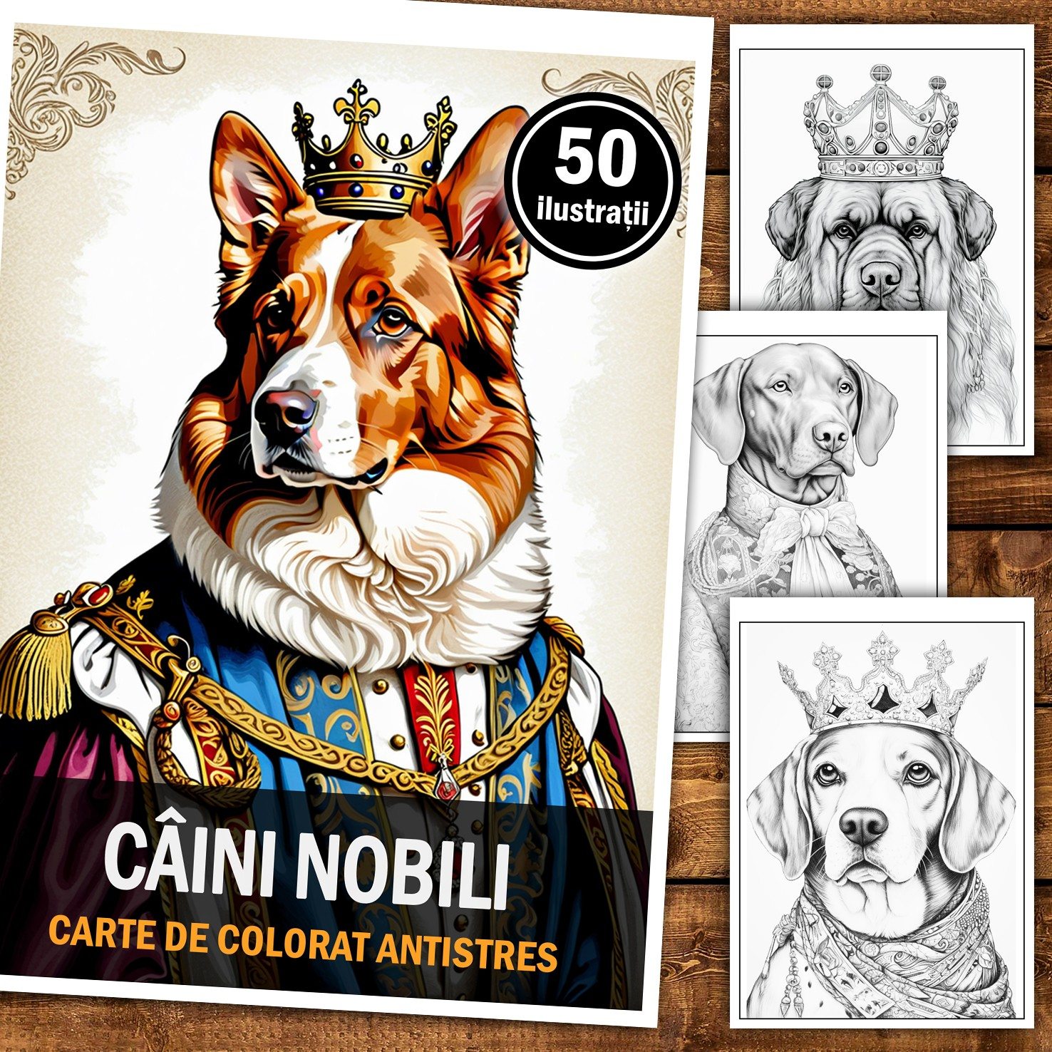 Carte de colorat pentru relaxare si antistres, 50 de ilustratii, Caini Nobili, 106 pagini