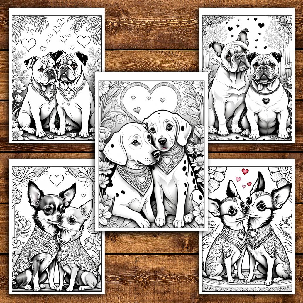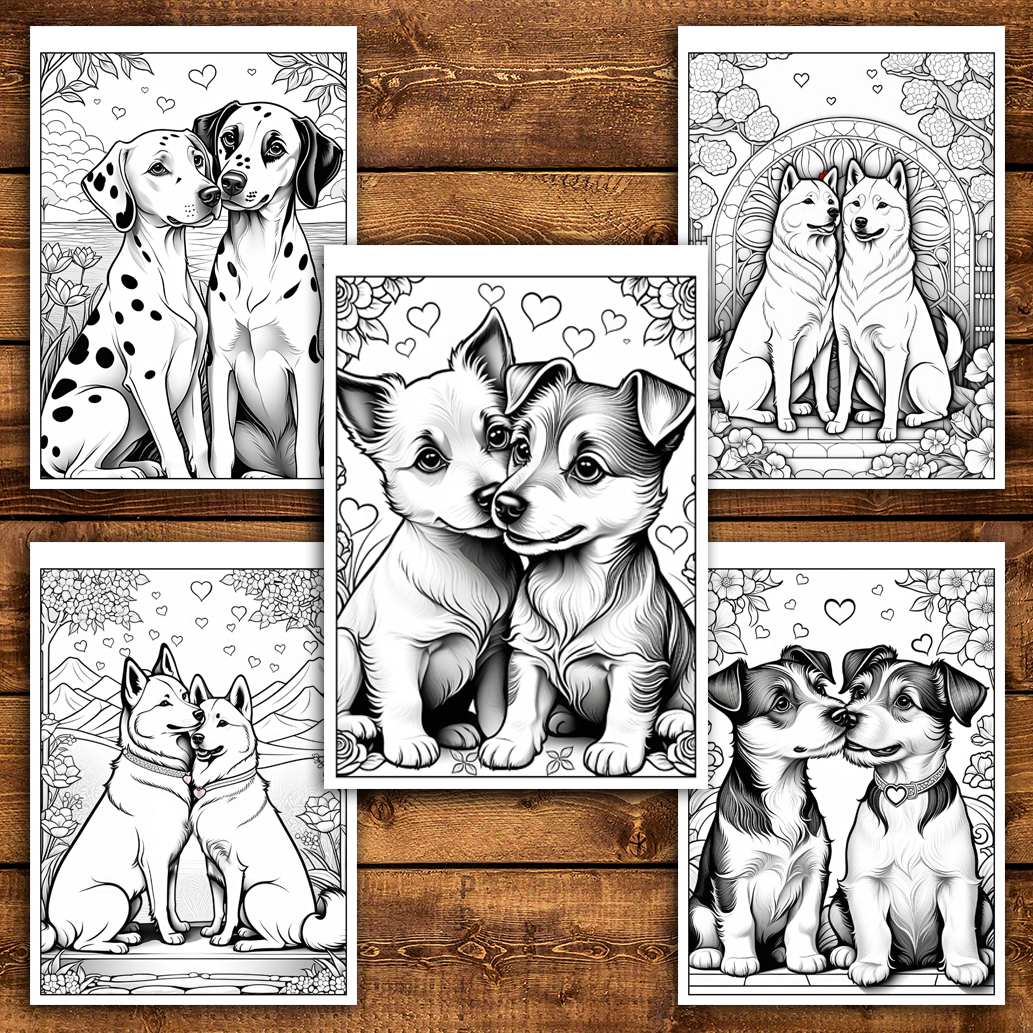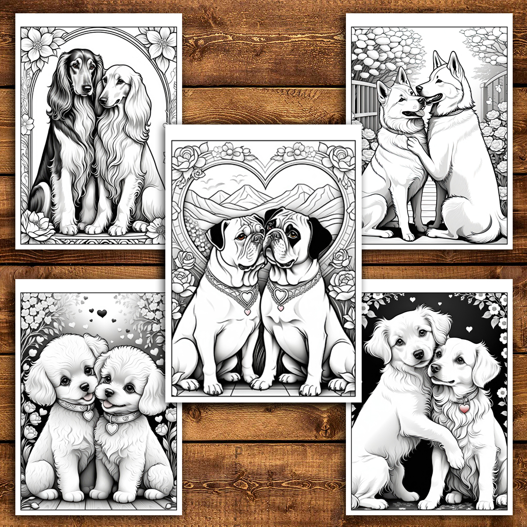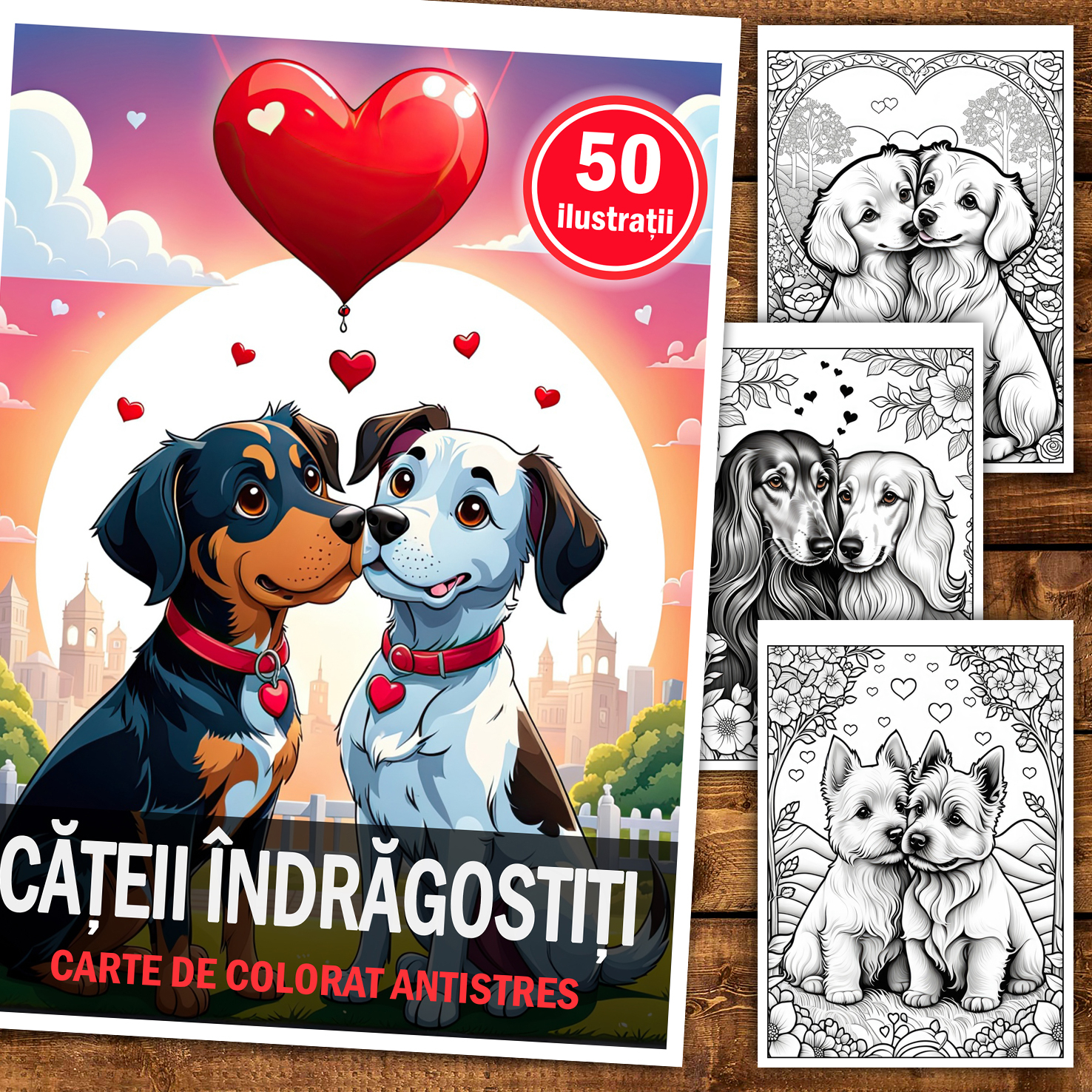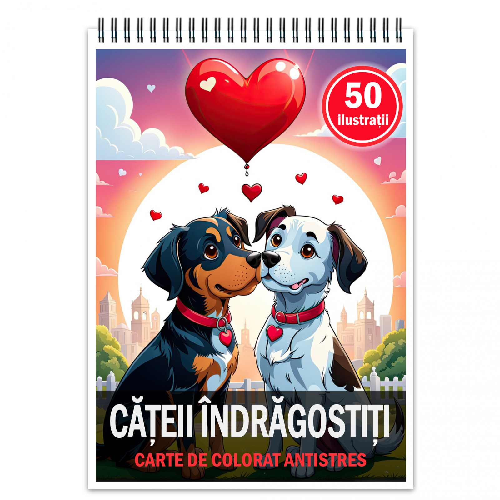 Carte de colorat pentru relaxare si antistres, 50 de ilustratii, Catei Indragostiti, 106 pagini