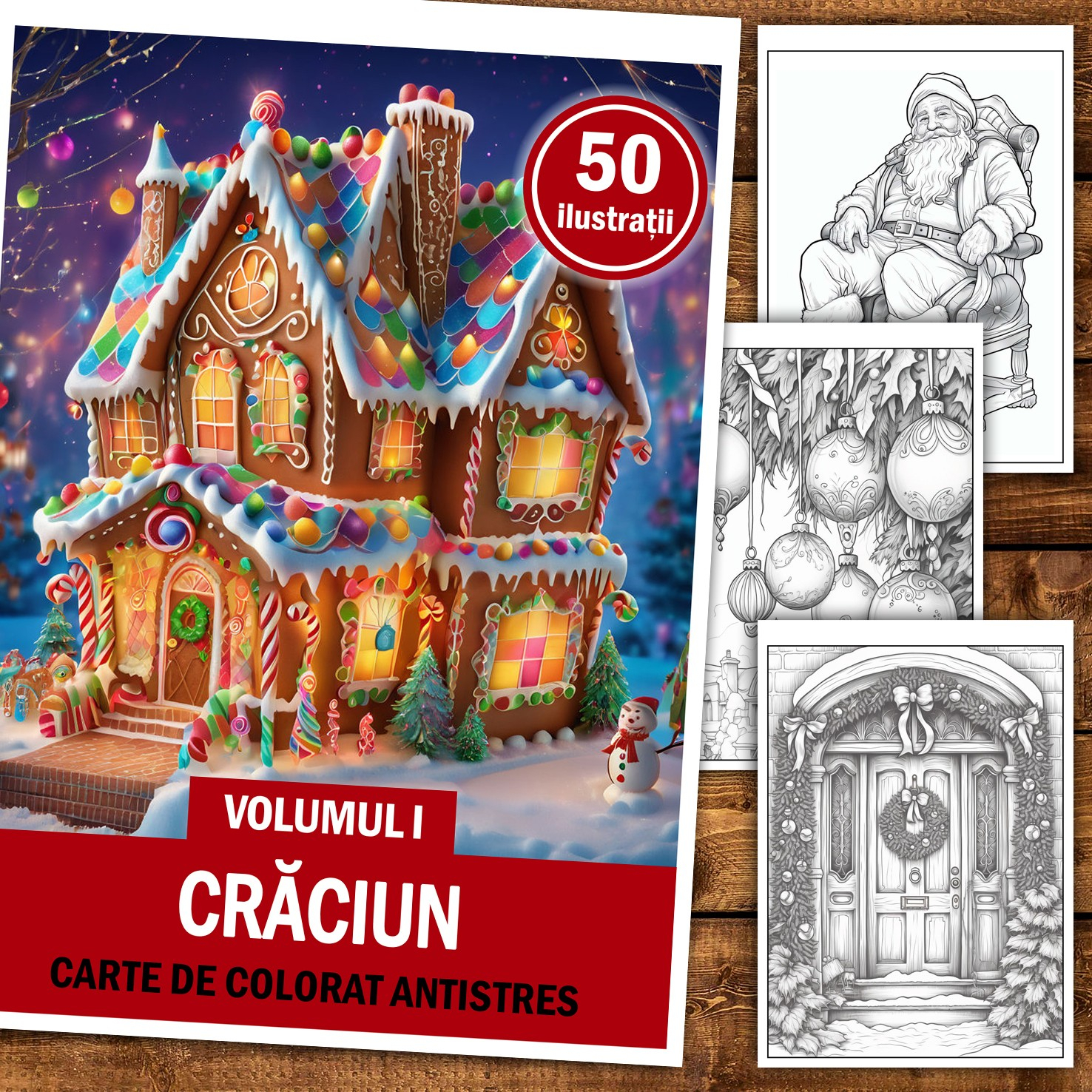 Carte de colorat pentru relaxare si antistres, 50 de ilustratii, Craciun - Volumul I, 106 pagini