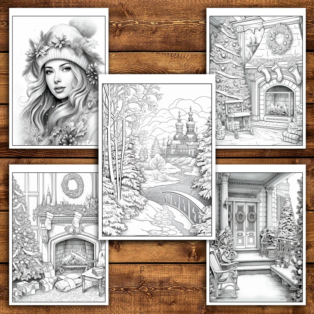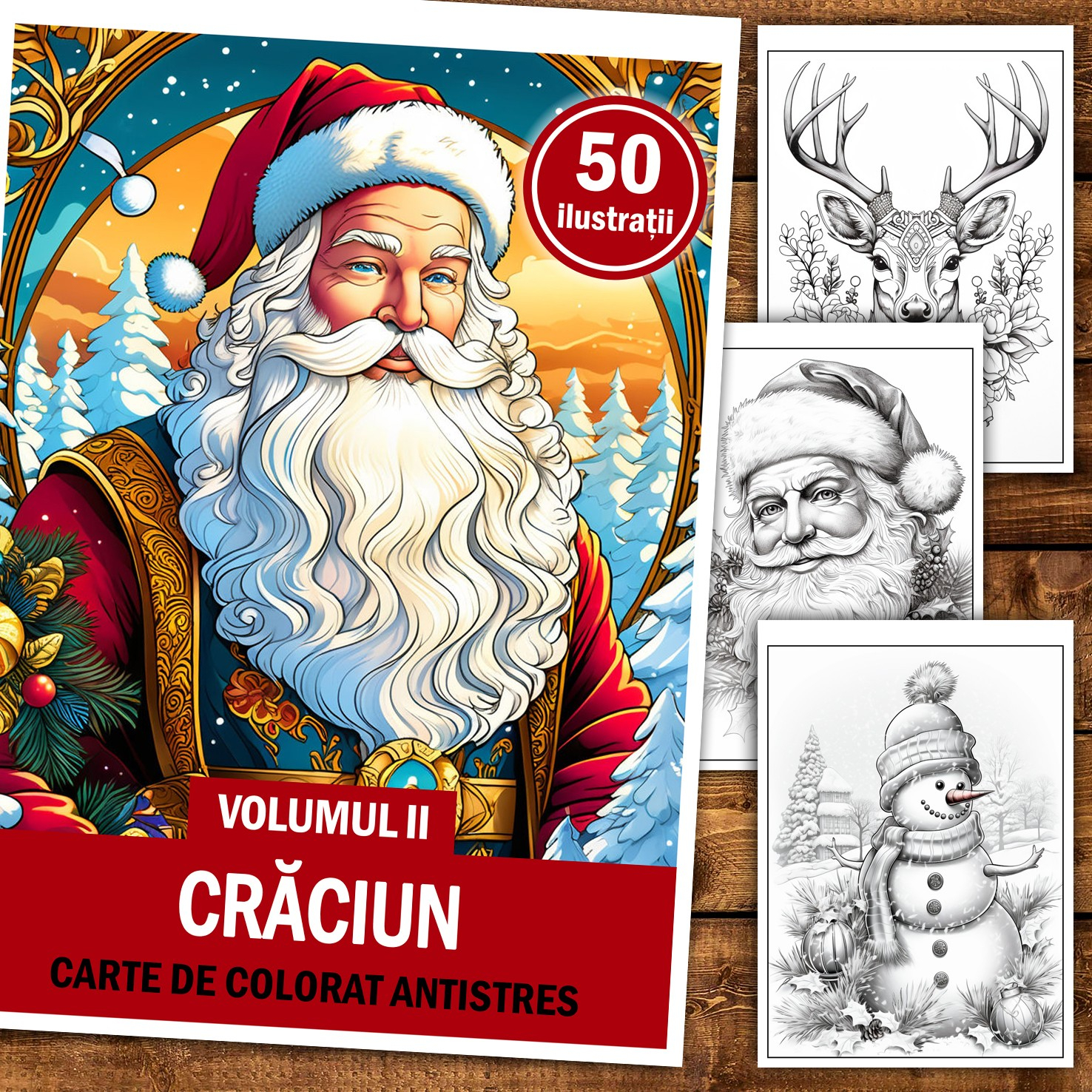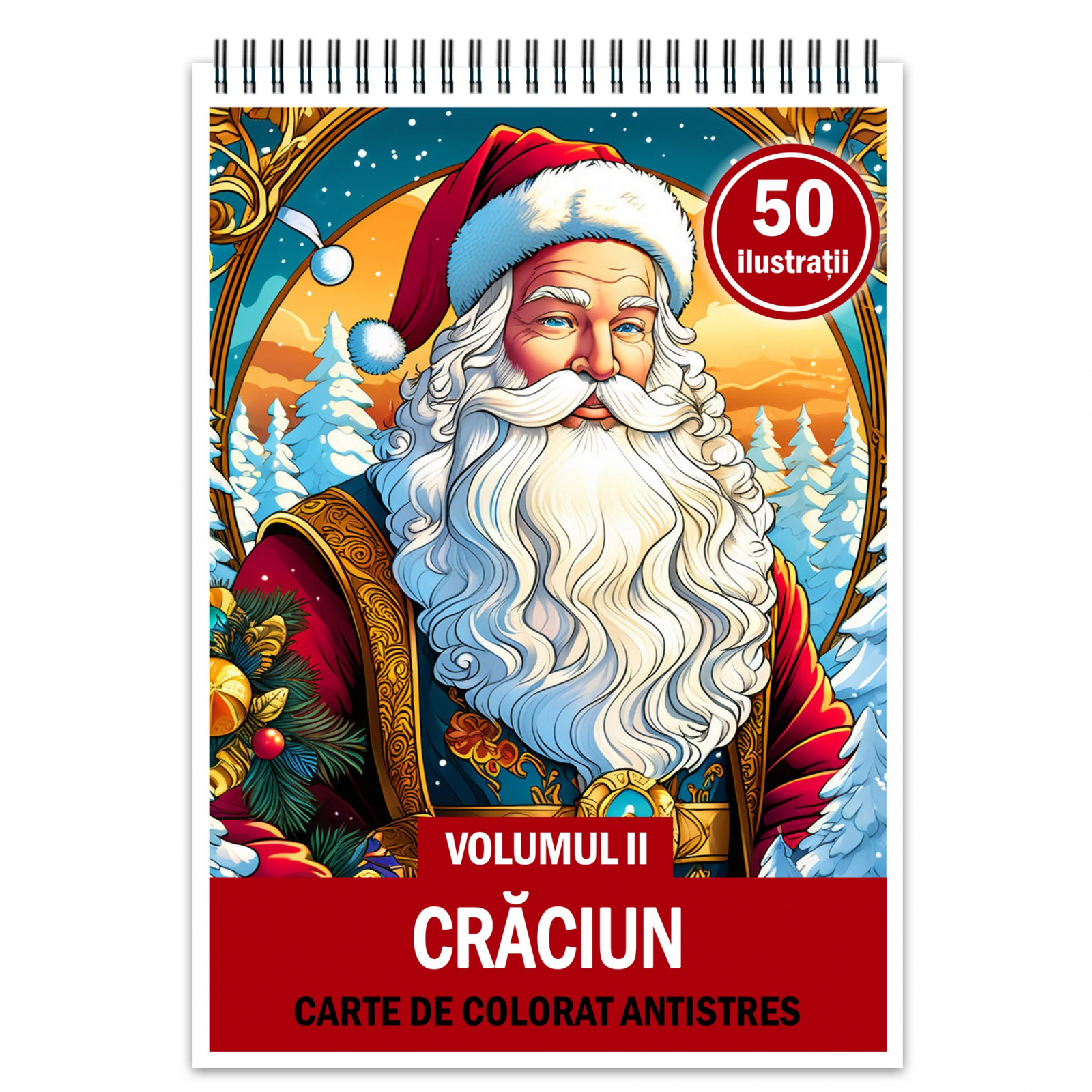 Carte de colorat pentru relaxare si antistres, 50 de ilustratii, Craciun - Volumul II, 106 pagini
