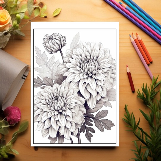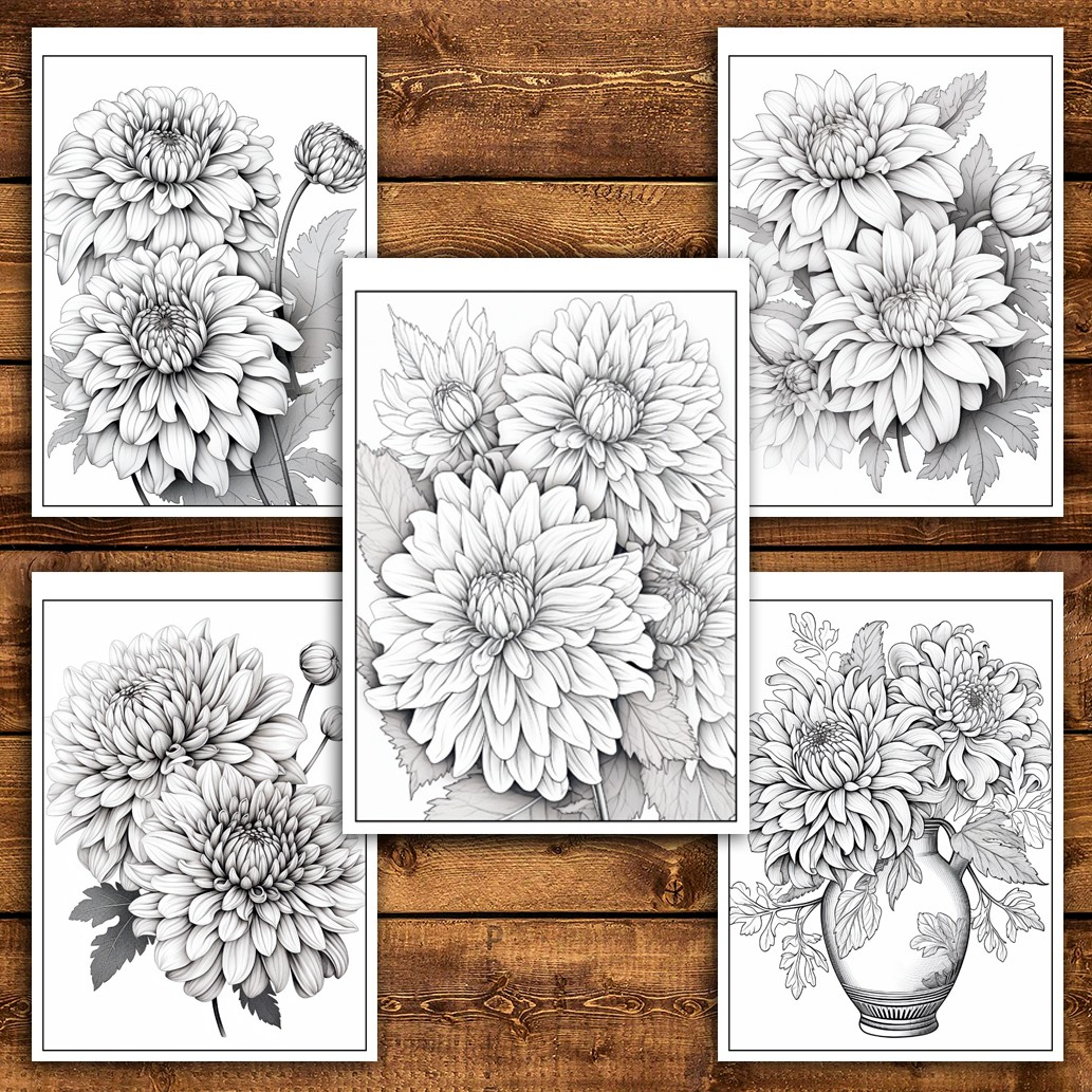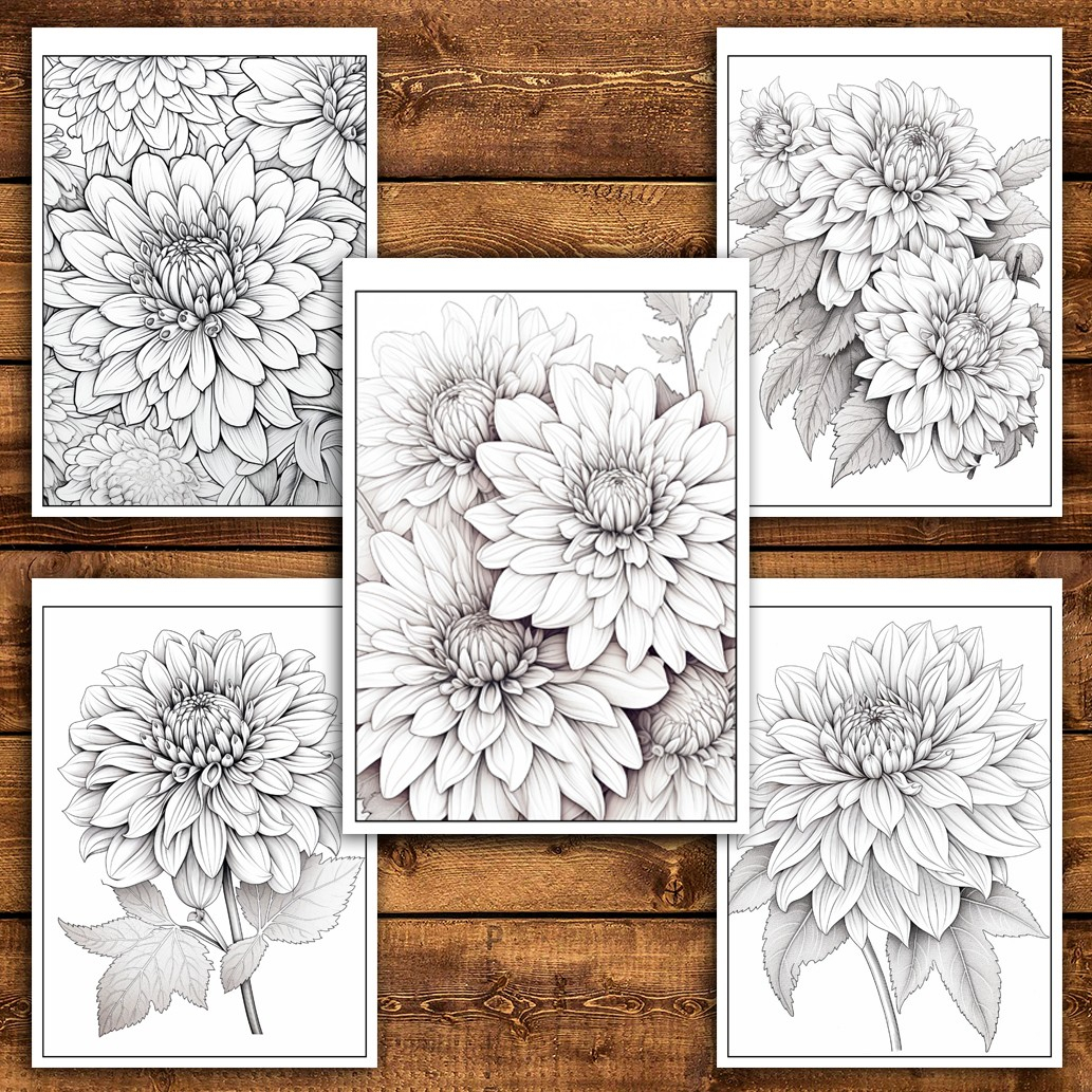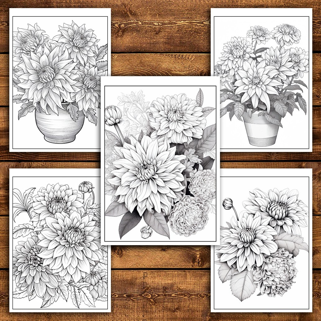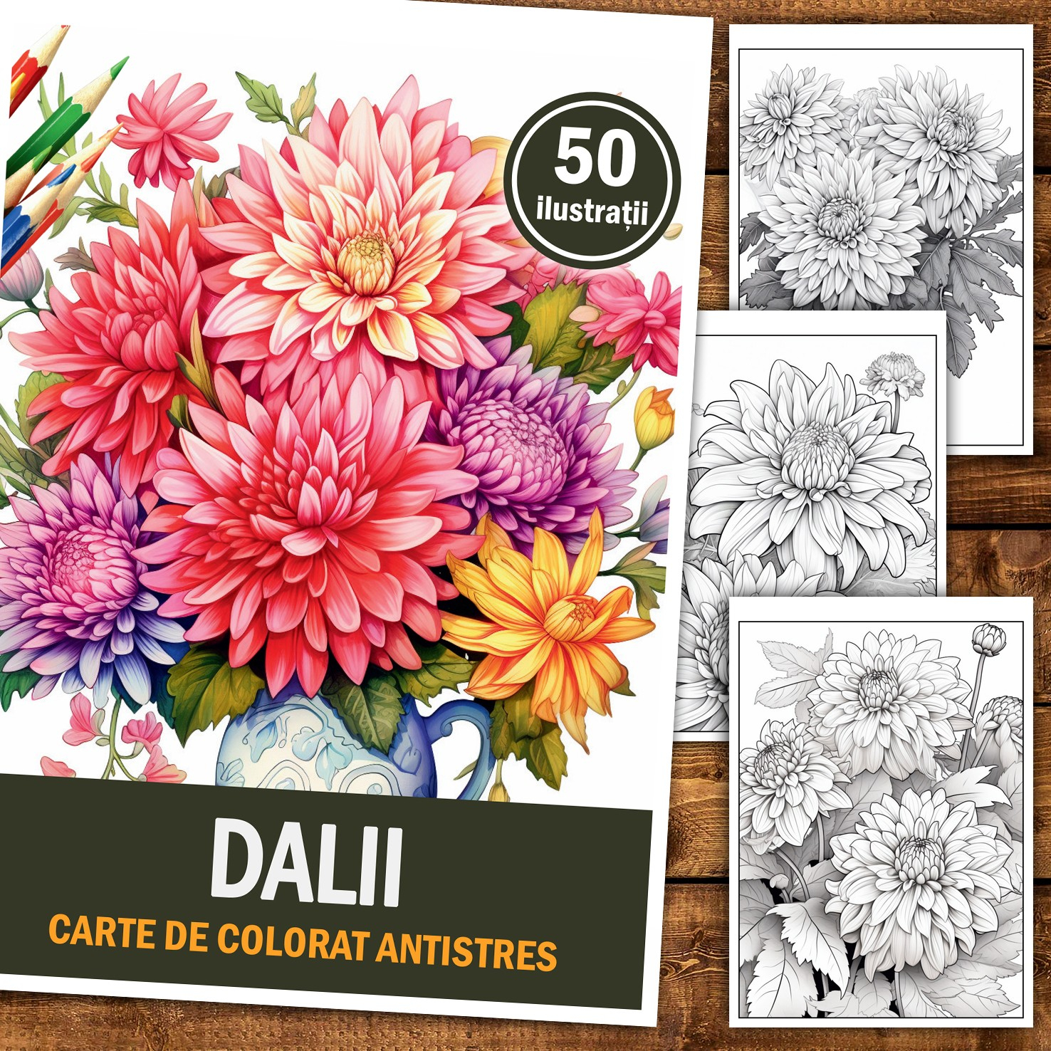 Carte de colorat pentru relaxare si antistres, 50 de ilustratii, Dalii, 106 pagini