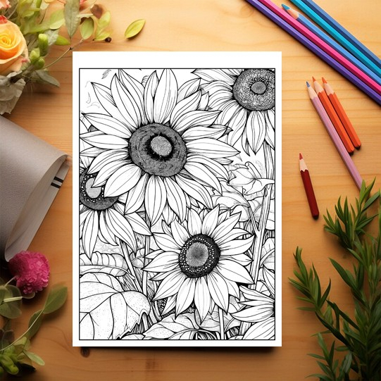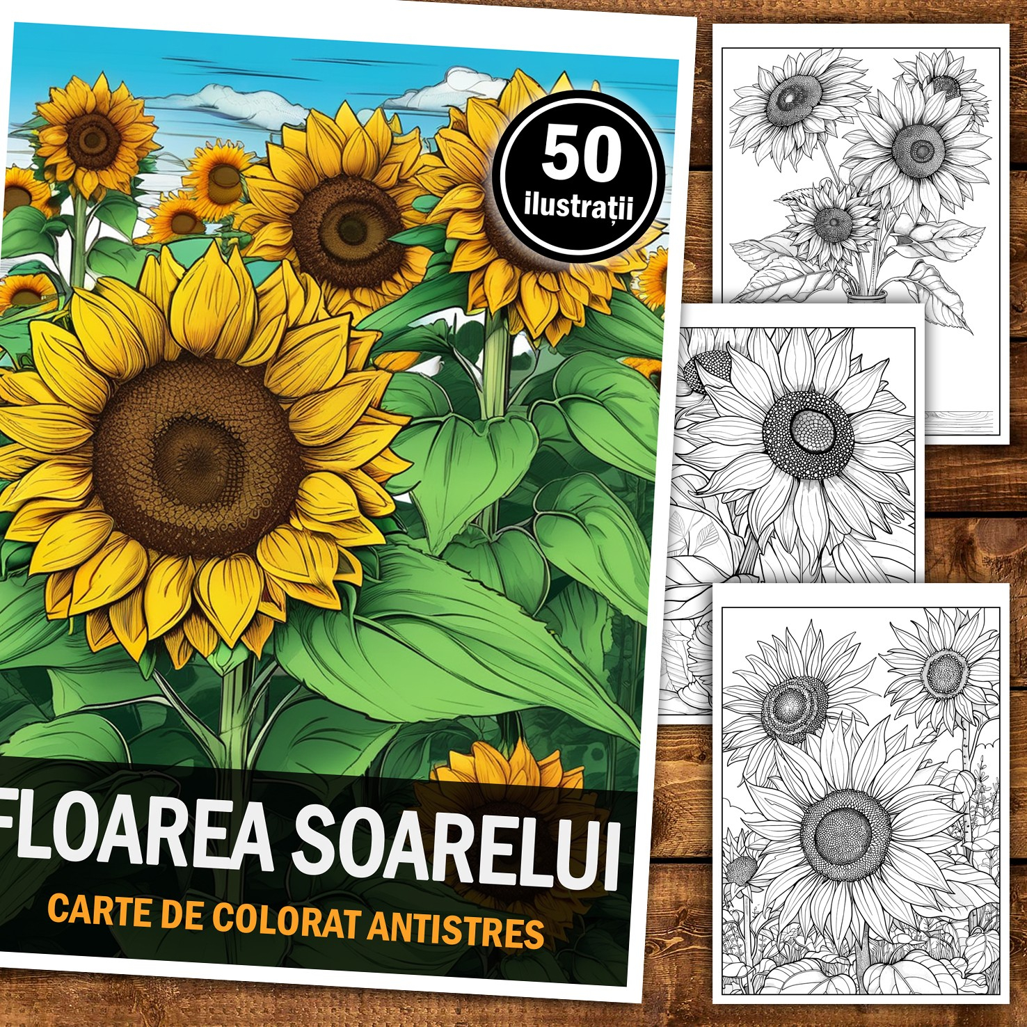 Carte de colorat pentru relaxare si antistres, 50 de ilustratii, Floarea Soarelui, 106 pagini