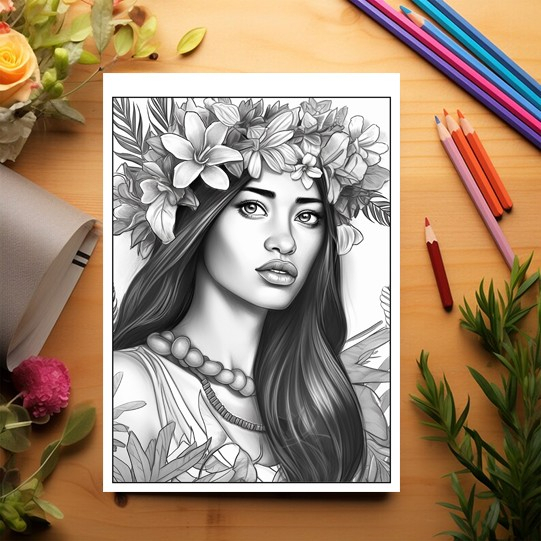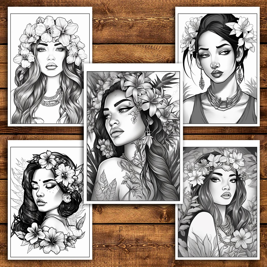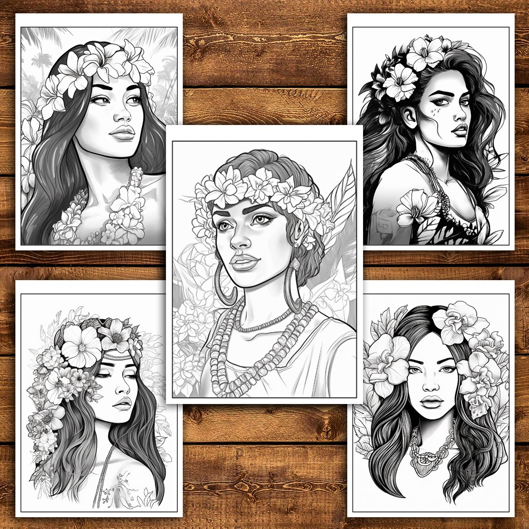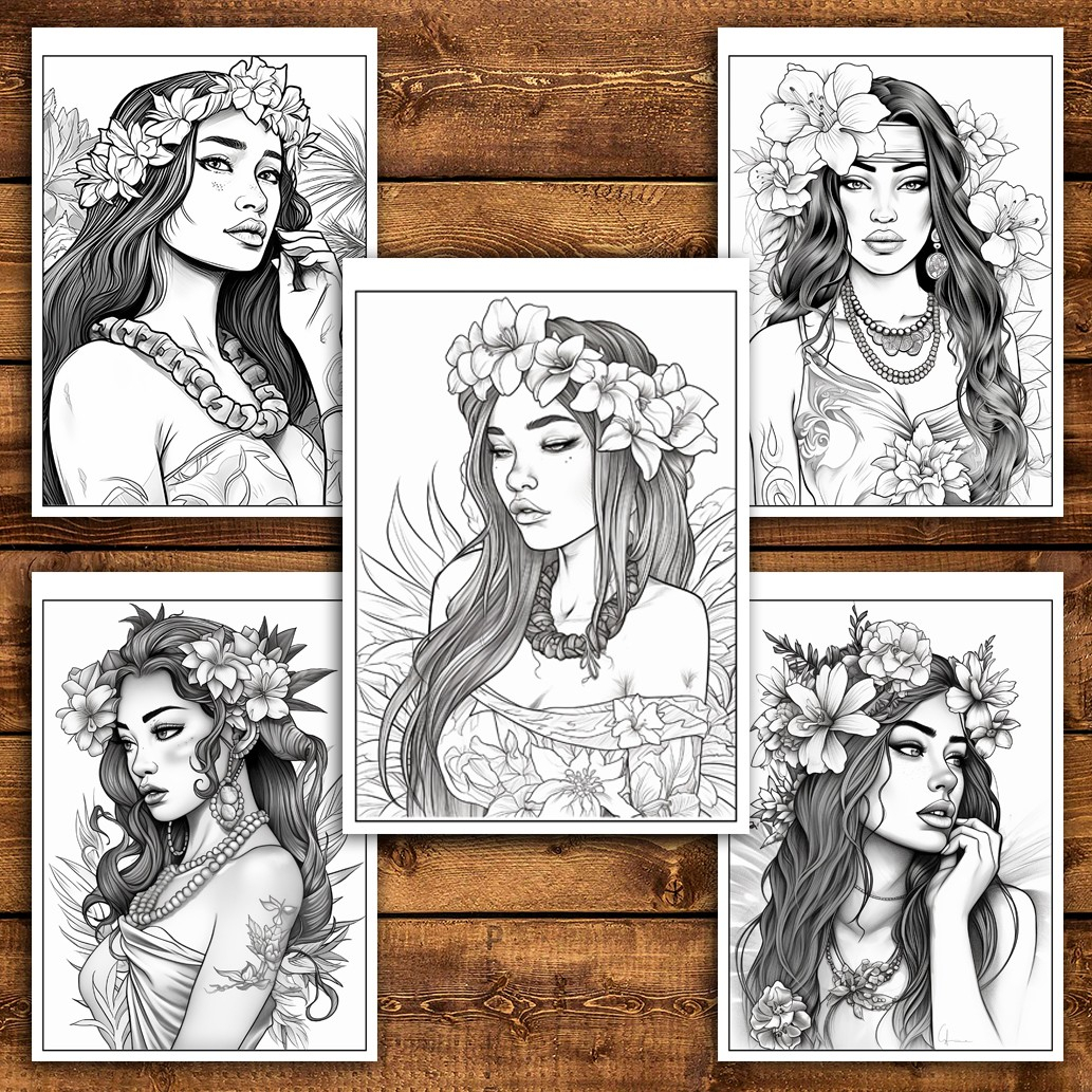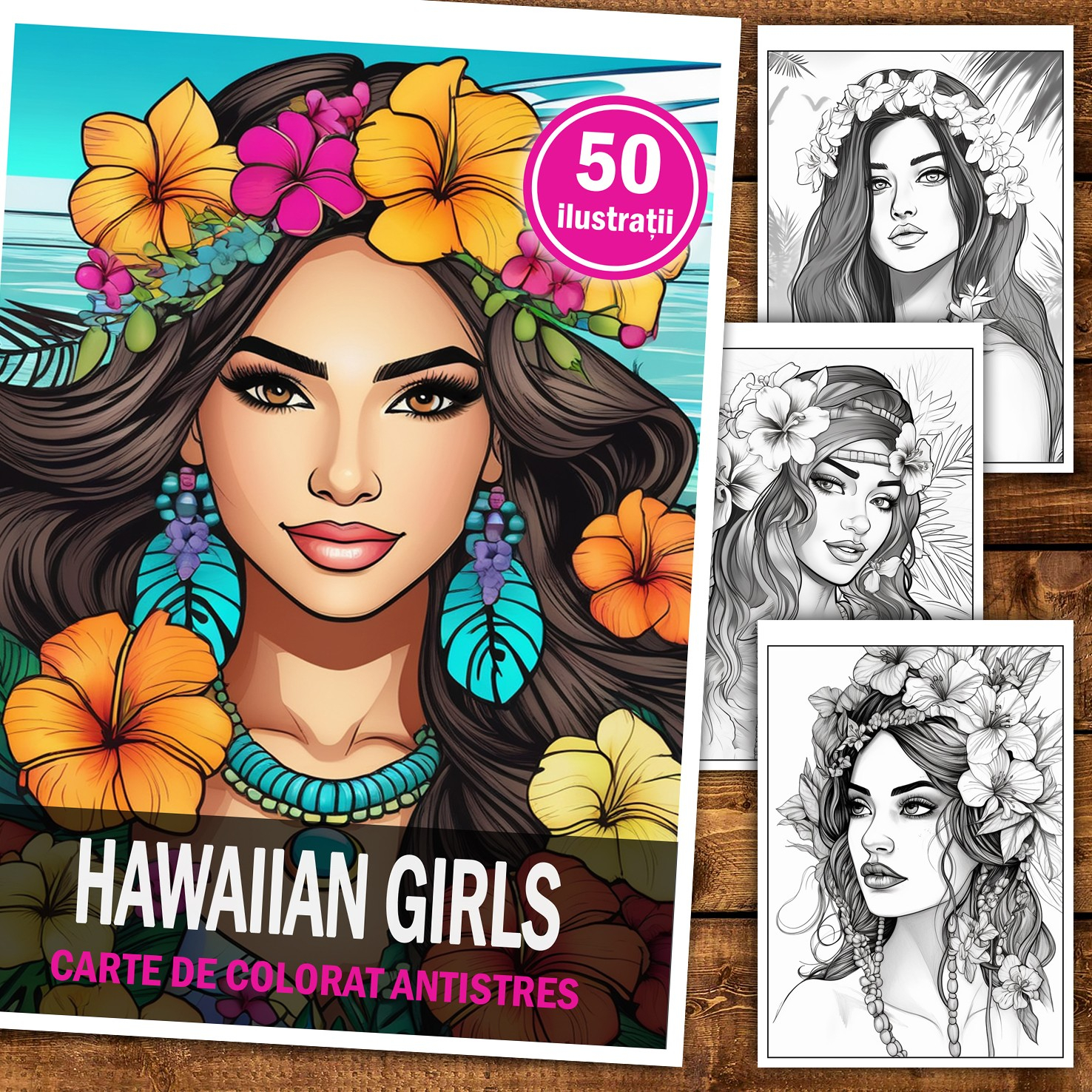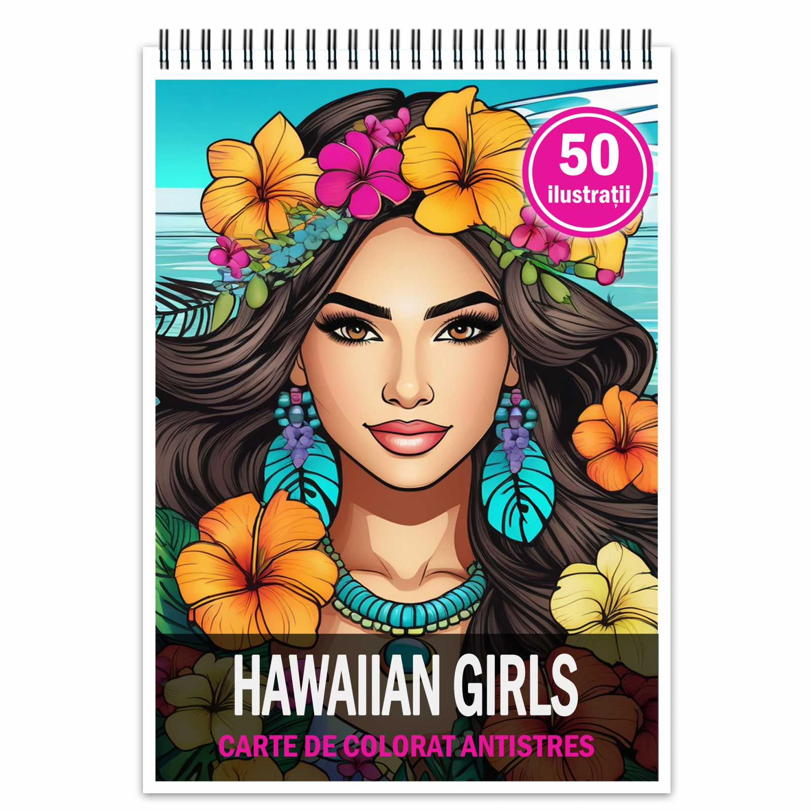 Carte de colorat pentru relaxare si antistres, 50 de ilustratii, Hawaian Girls, 106 pagini
