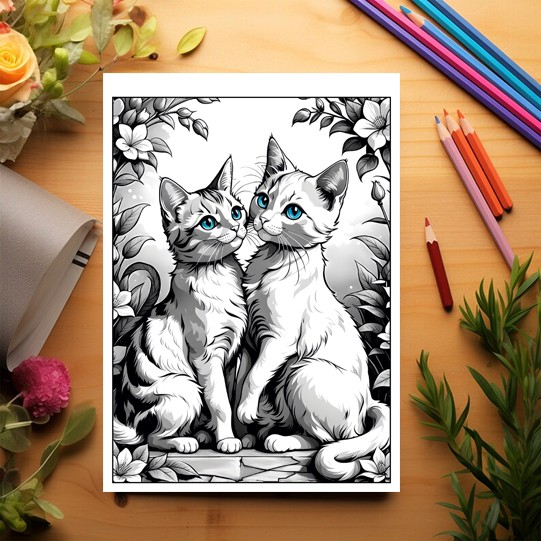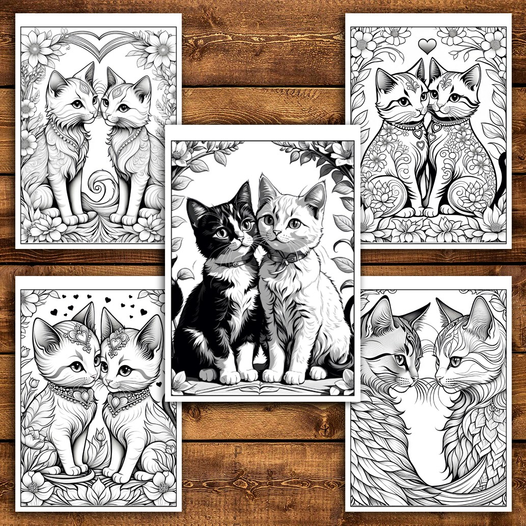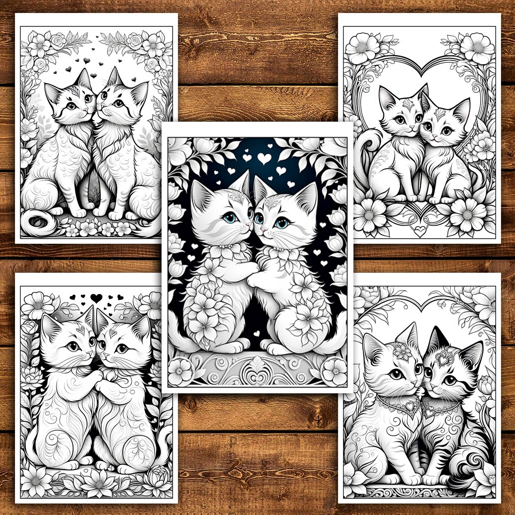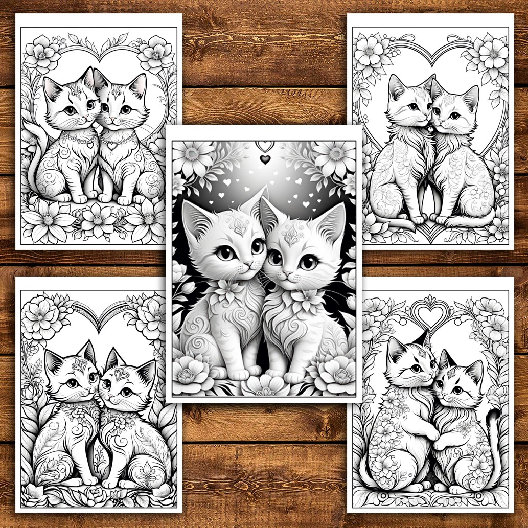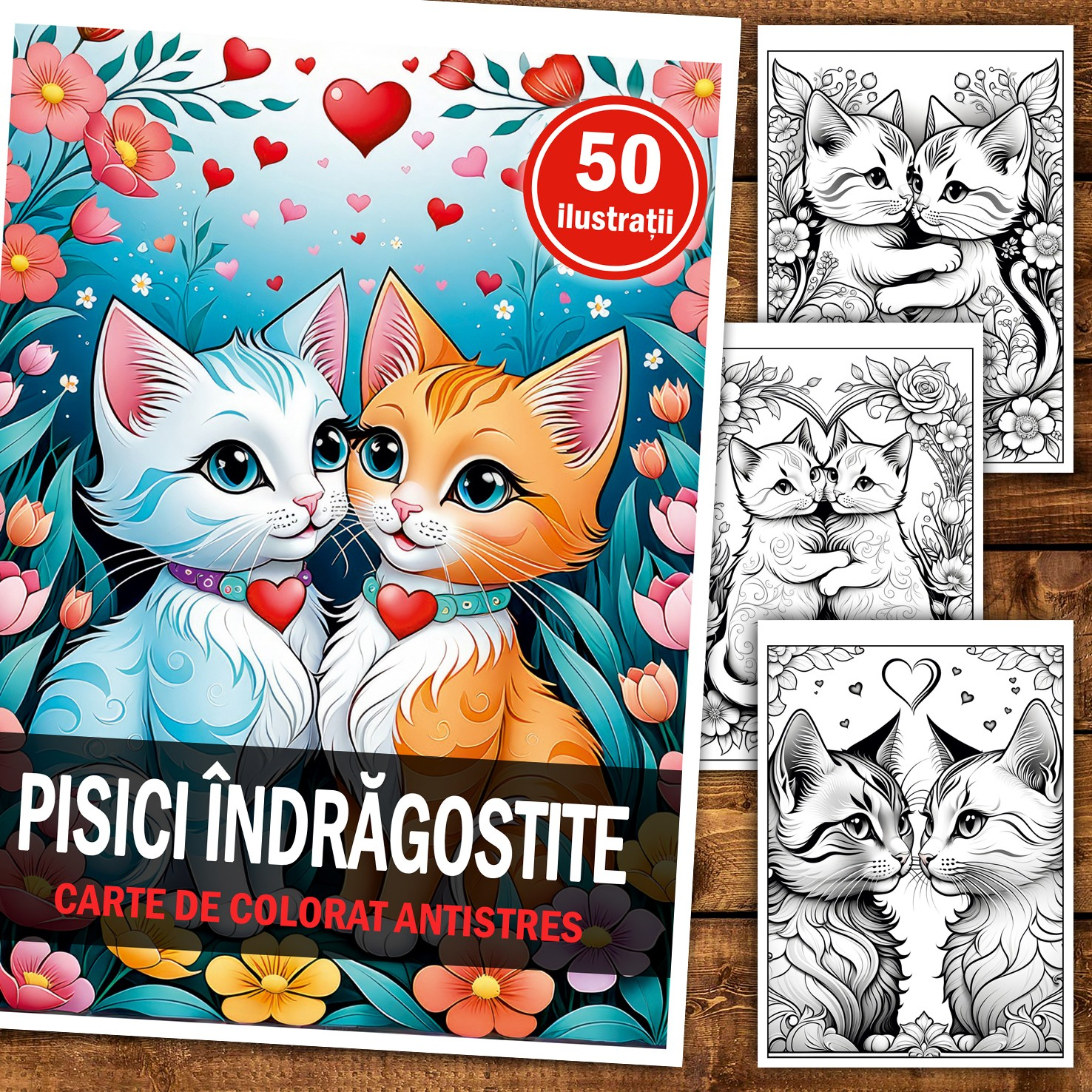 Carte de colorat pentru relaxare si antistres, 50 de ilustratii, Pisici Indragostite, 106 pagini