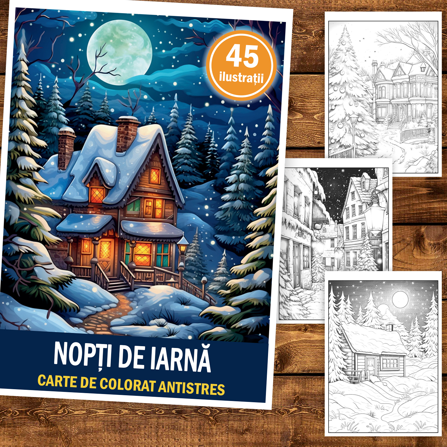 Carte de colorat pentru copii , 45 de ilustratii Nopti de Iarna, 96 pagini