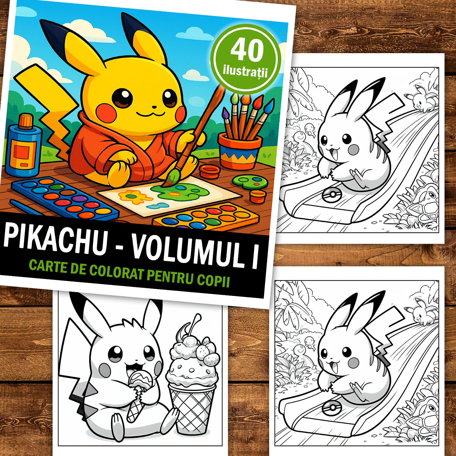 Carte de colorat pentru copii , 40 de ilustratii Pikachu - Volumul I, 86 pagini