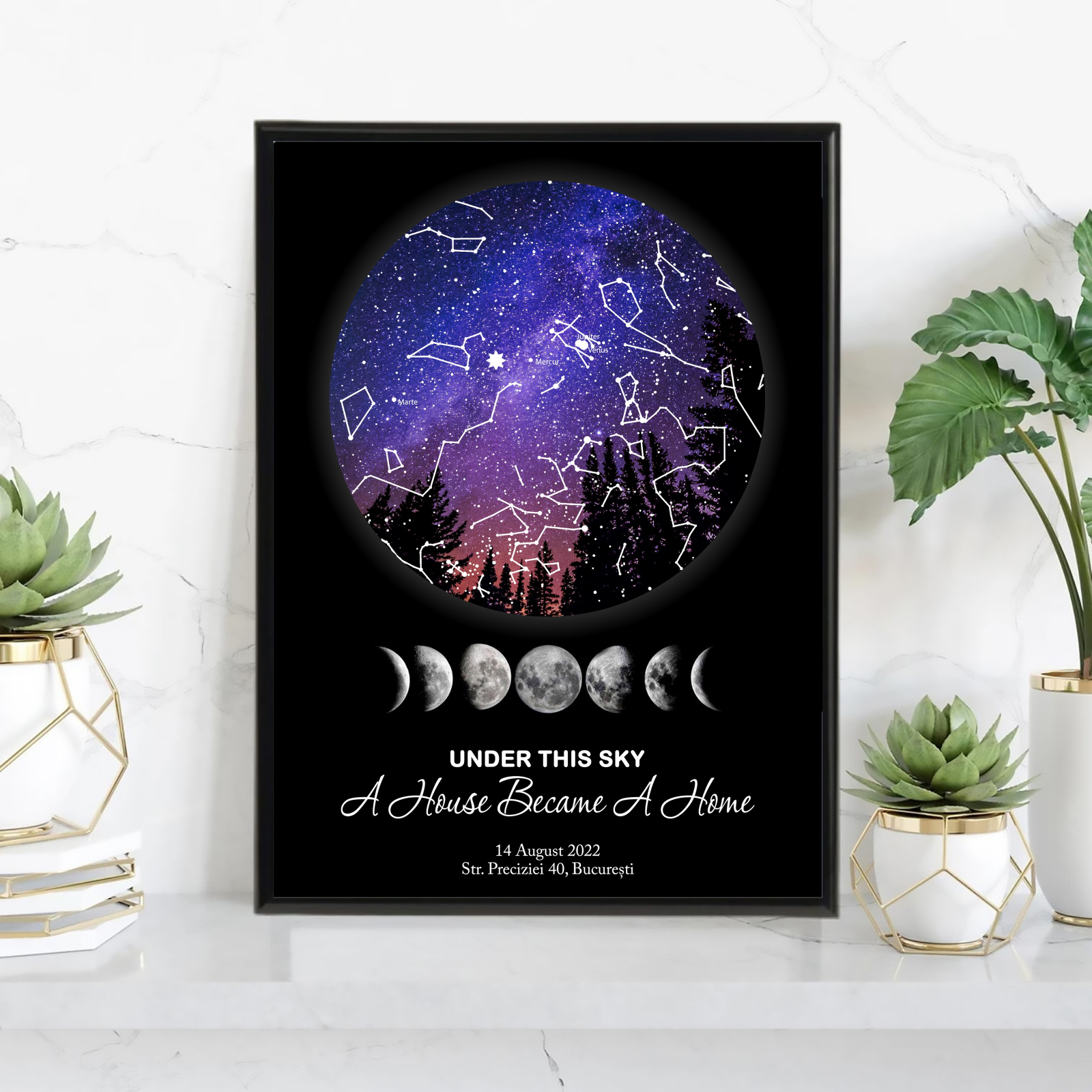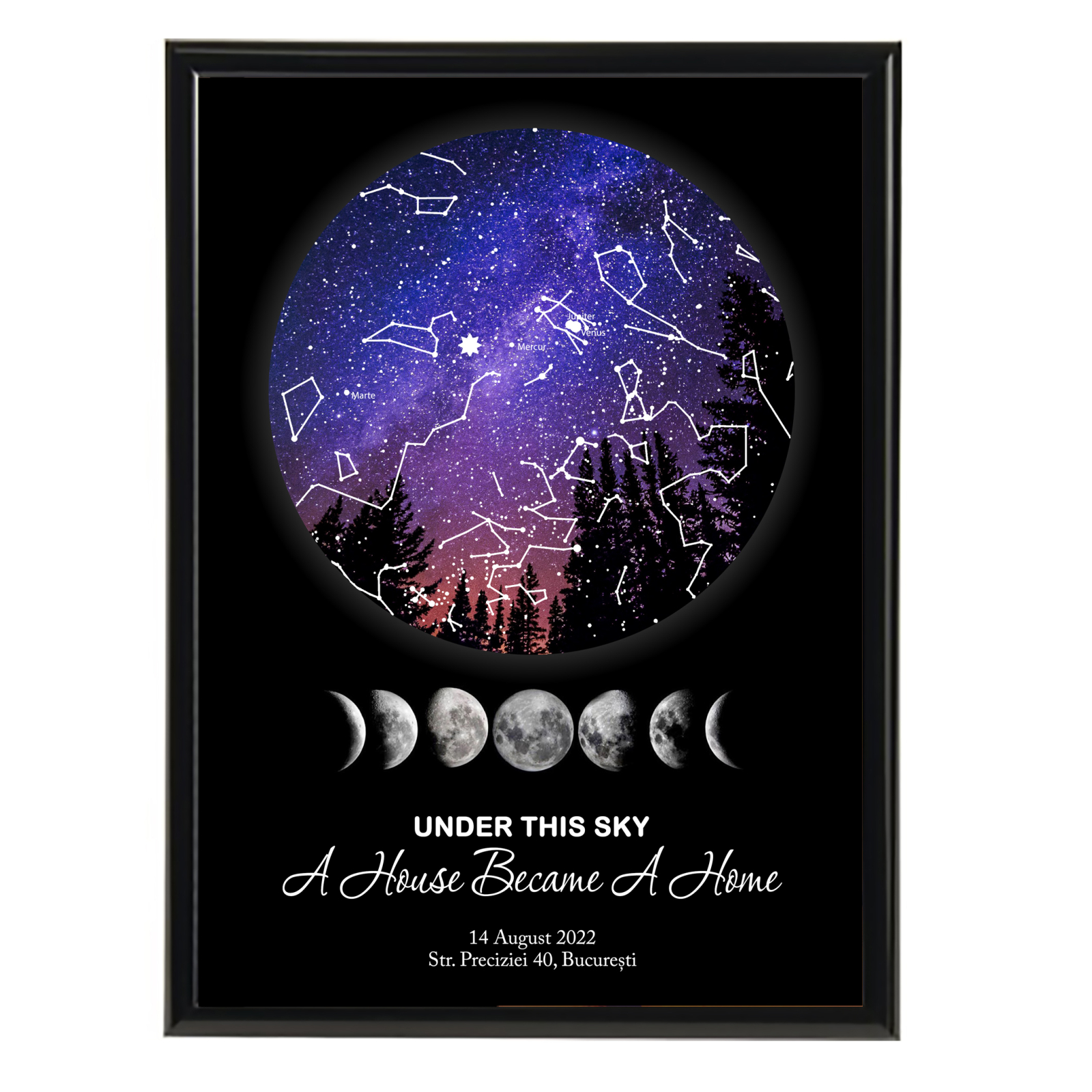 Imagineaza-ti un tablou care surprinde exact cum arata cerul intr-un moment special al vietii tale. O clipa in care timpul parca s-a oprit: nasterea unui copil, primul sarut, o cerere in casatorie sau acel moment in care ai simtit fluturi in stomac.
