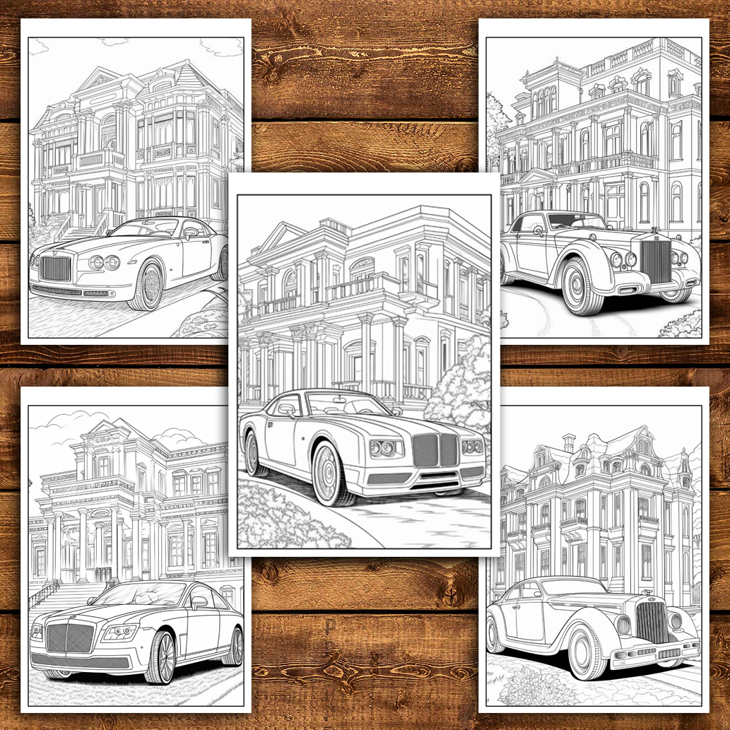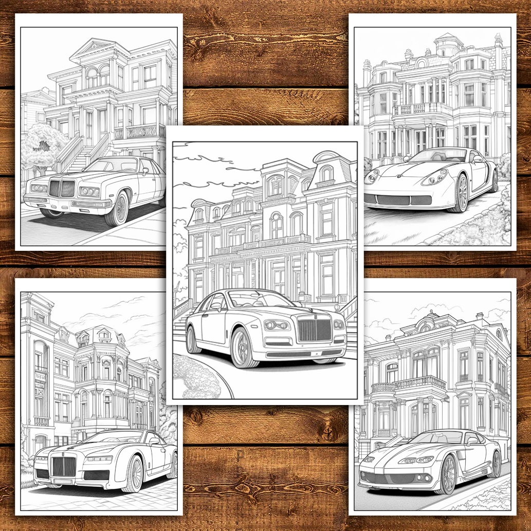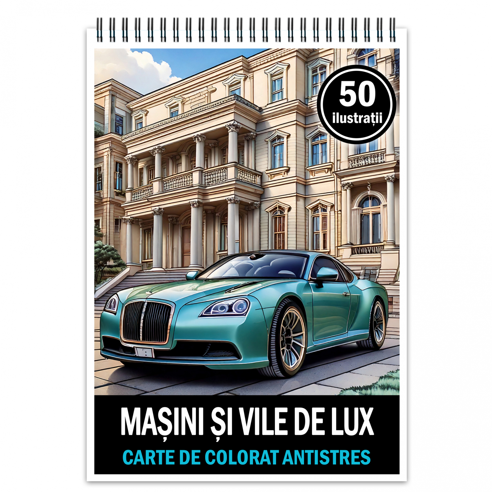 Carte de colorat antistres , 50 de ilustratii Masini si Vile de Lux, 106 pagini