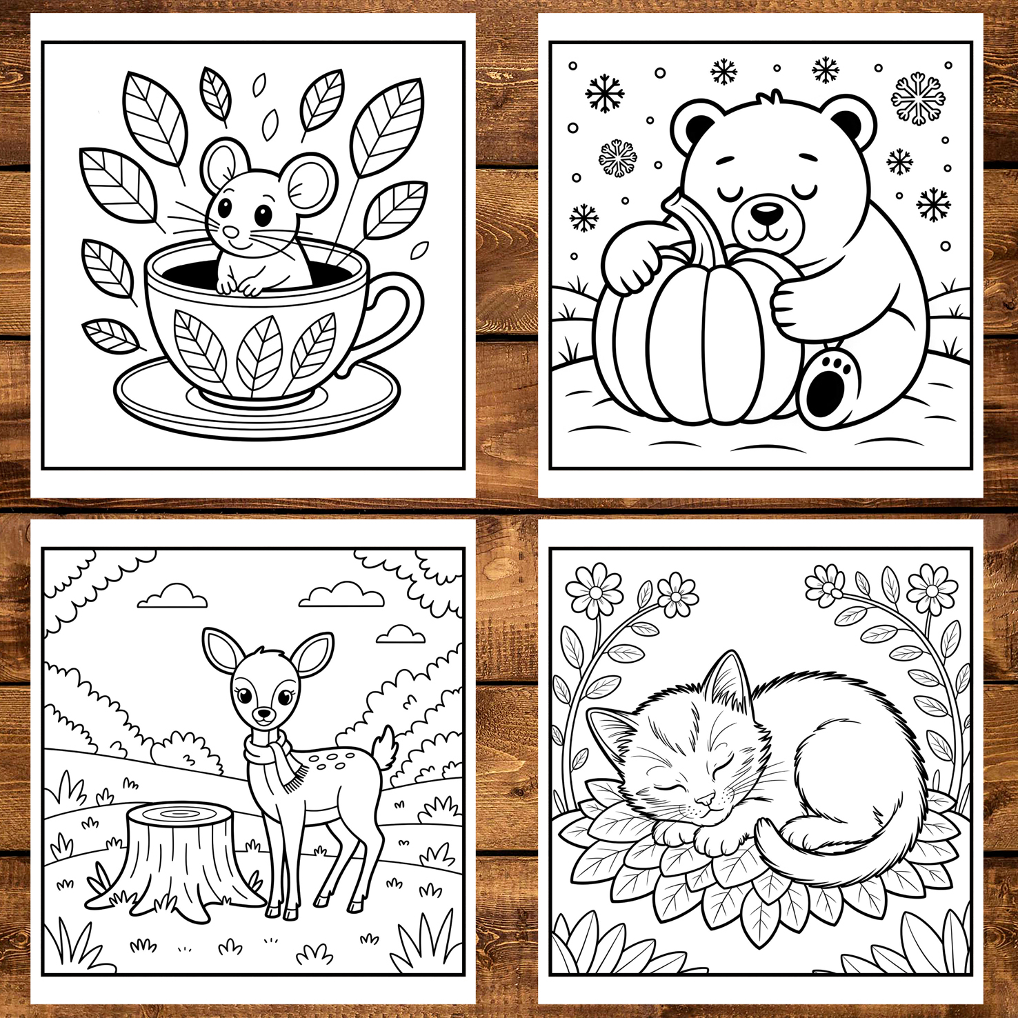 Carte de colorat, 50 de ilustratii Animalute Toamna, 106 pagini