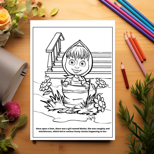 Carte de colorat pentru copii, 32 de ilustratii Masha si Ursul, 68 pagini