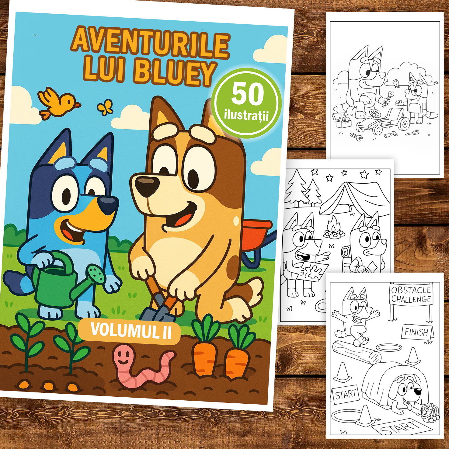 Carte de colorat pentru copii, 50 de ilustratii Aventurile lui Bluey - Volumu, 106 pagini