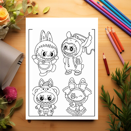 Carte de colorat pentru copii , 50 de ilustratii Labubu - Volumul IV, 106 pagini