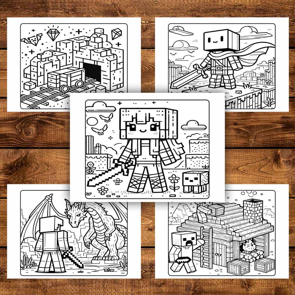 Carte de colorat pentru copii, 50 de ilustratii Minecraft - Volumul III, 106 pagini