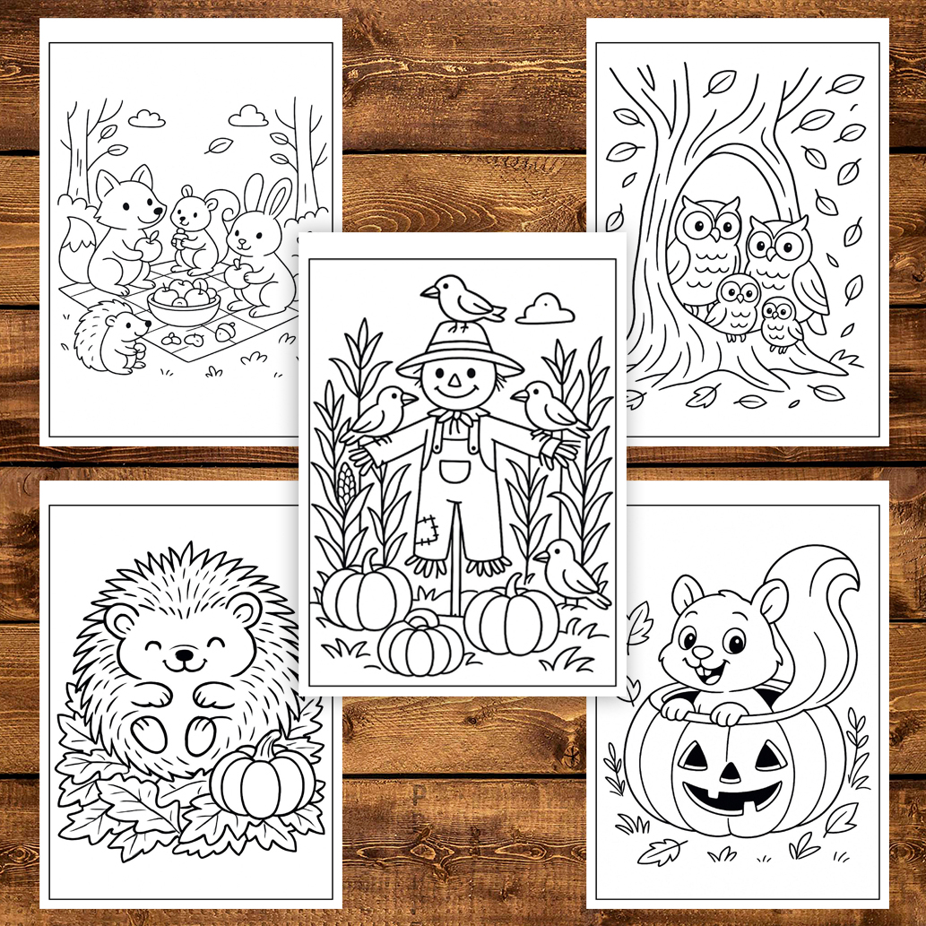 Carte de colorat pentru copii , 50 de ilustratii O Toamna Linistita 106 pagini