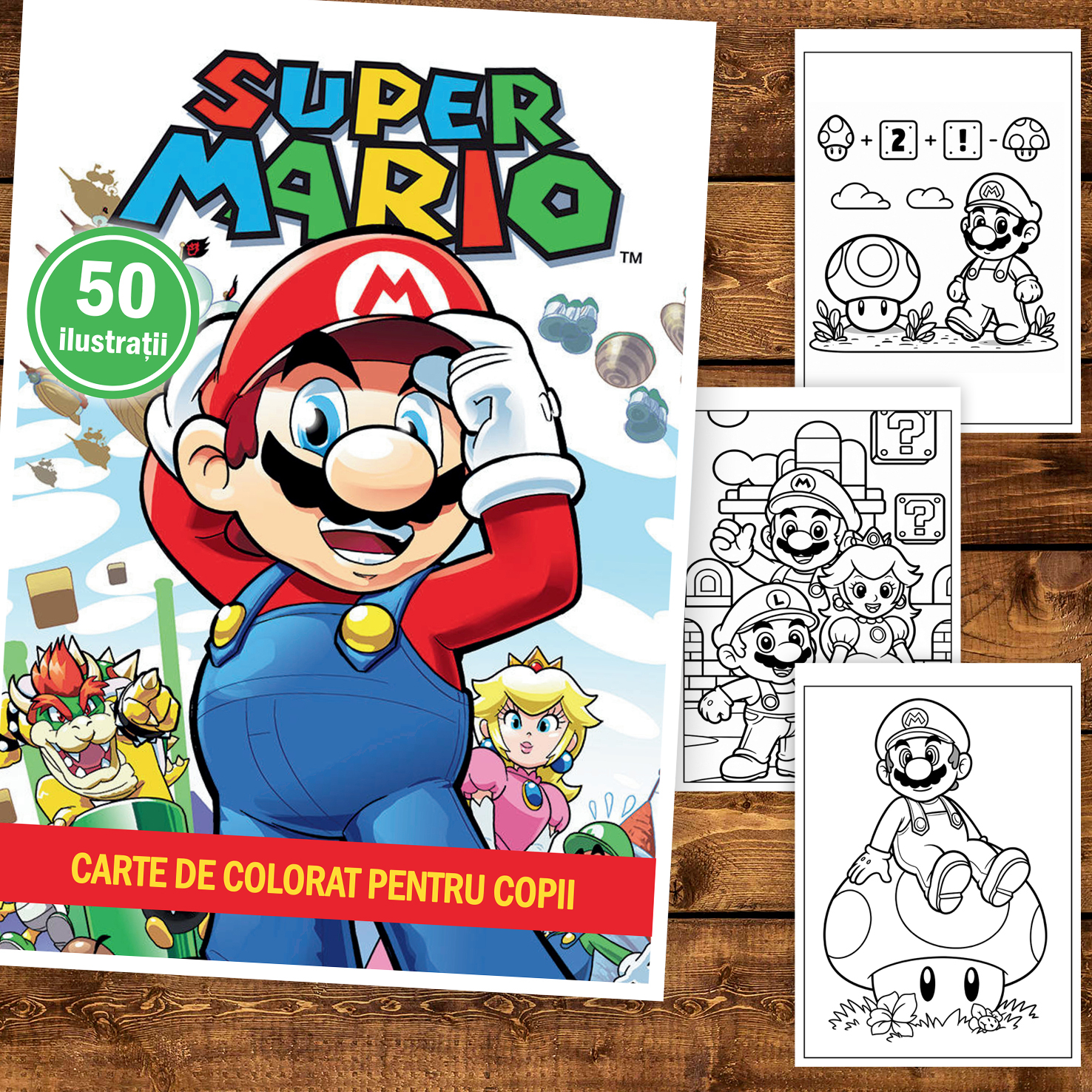 Carte de colorat pentru copii , 50 de ilustratii Super Mario, 106 pagini